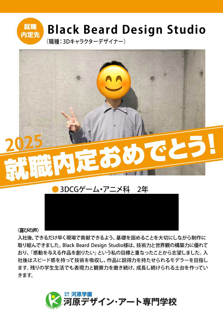 就職できるか不安も大きかったのですが、面接を通して自分の作品を業界の方に直接見ていただき、客観的なフィードバックを受けられたことが大きな学びになりました。