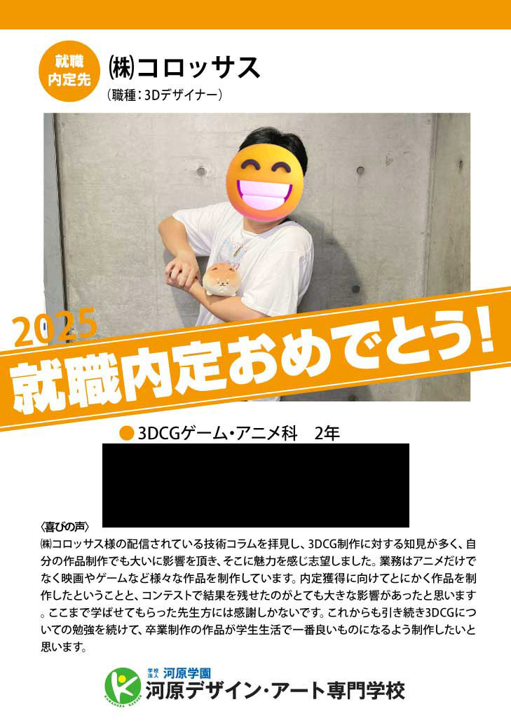 ![🎊業界内定者インタビュー 25卒vo.5 [既卒 Kさん]🎊 🎊業界内定者インタビュー 25卒vo.5 [既卒 Kさん]🎊](https://idea.kawahara.ac.jp/wp-content/uploads/2025/11/61725199bd5a0870cb4a448a70d2d926.jpg)
