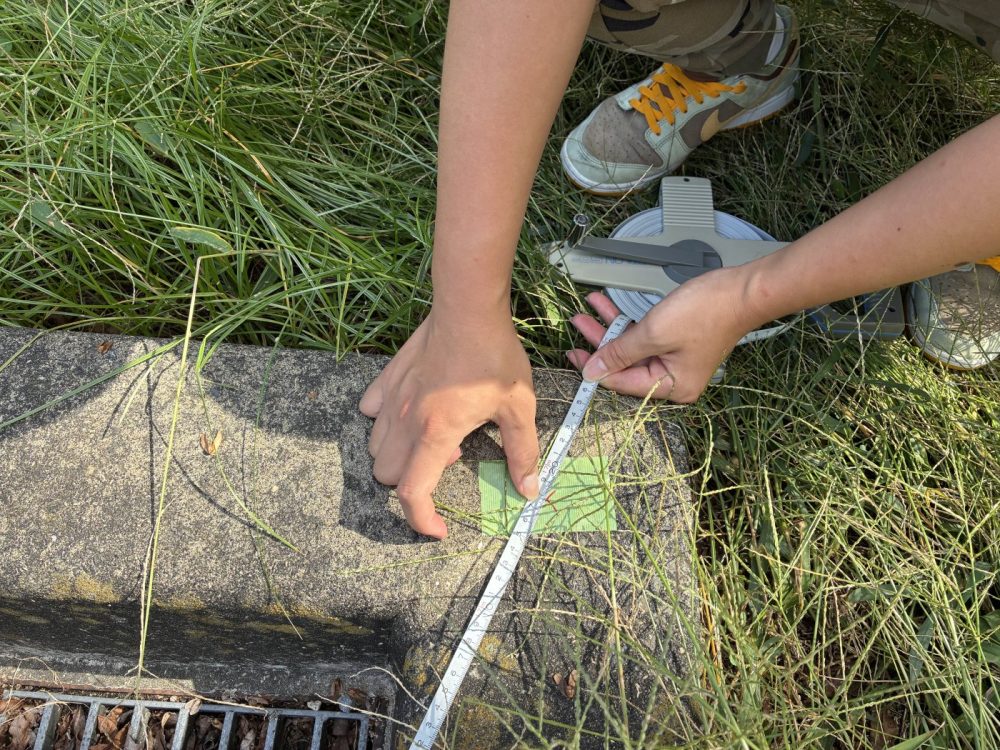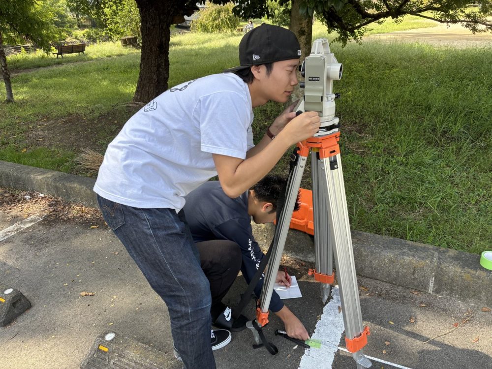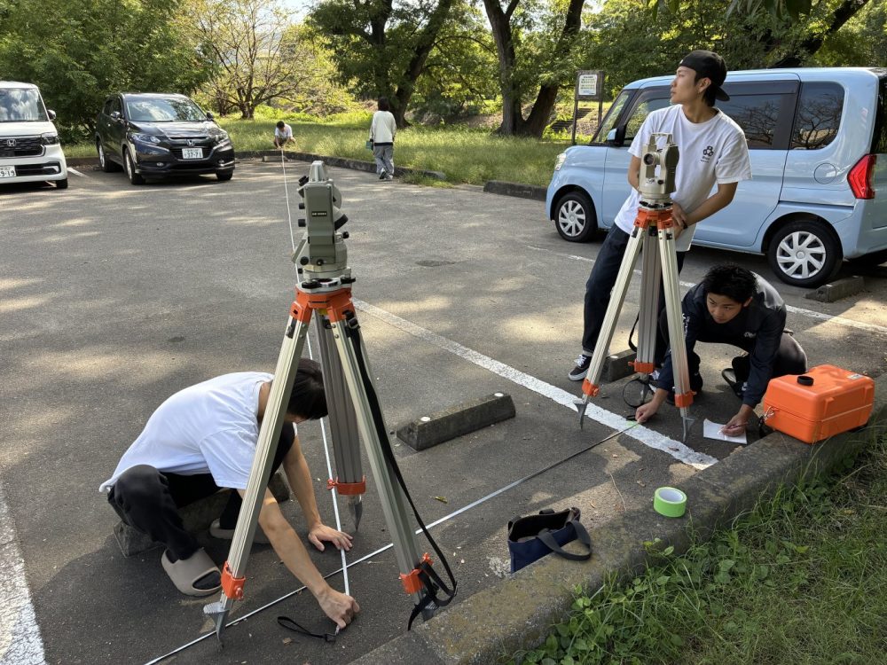 こんにちは、インテリア・建築デザイン科の大谷でございます。後期の授業が始まり、この日は久しぶりの測量実習。