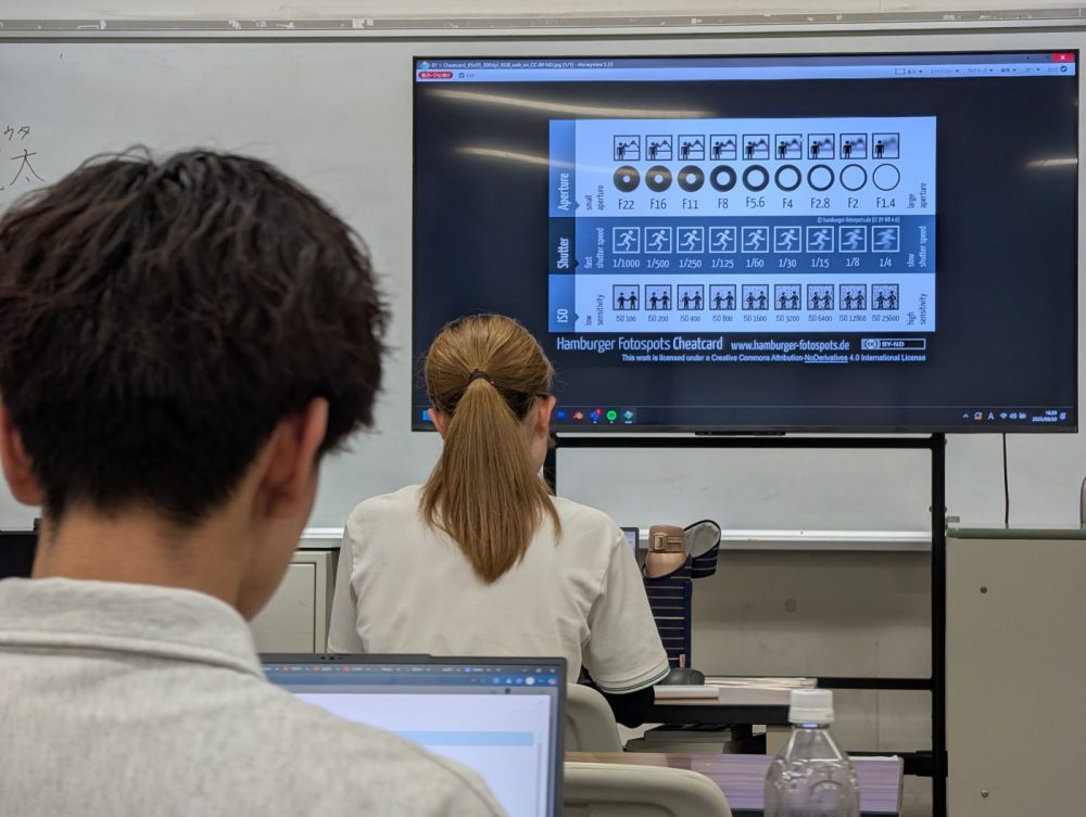 後期最初の「撮影技法」は、前期の重要項目であるISO感度、絞り(F値)、そしてシャッタースピードの3要素の復習からスタートしました。