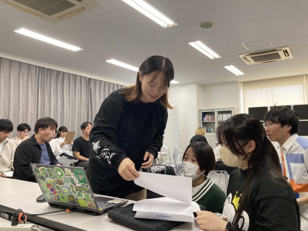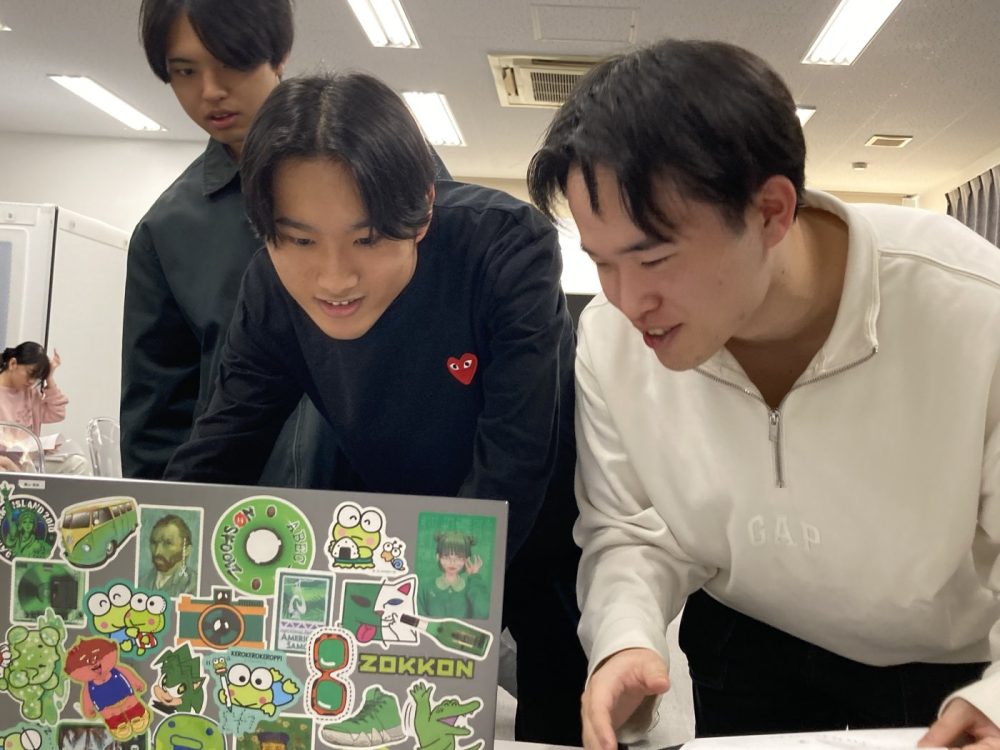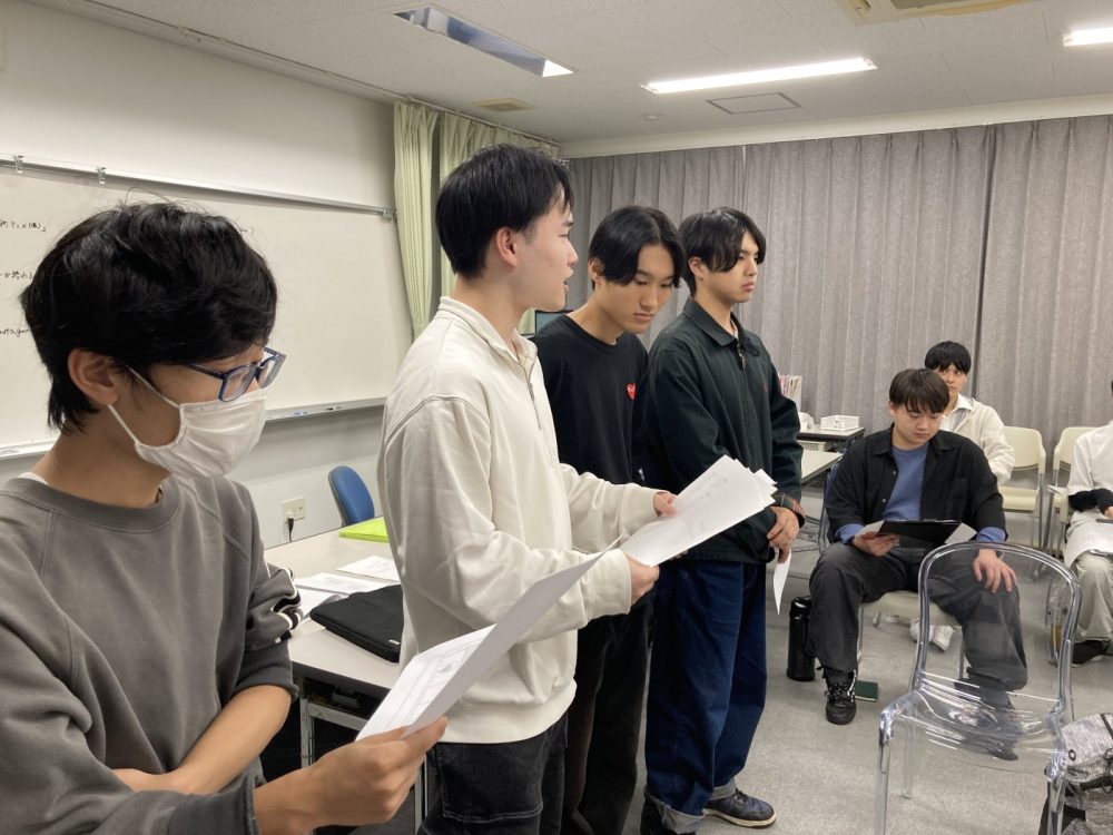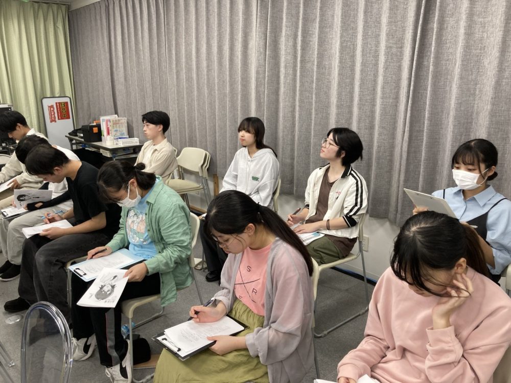 制作する映像作品や登場人物の性格や声の特徴を聞いて自分の配役を検討する声優タレント科の学生さんたち