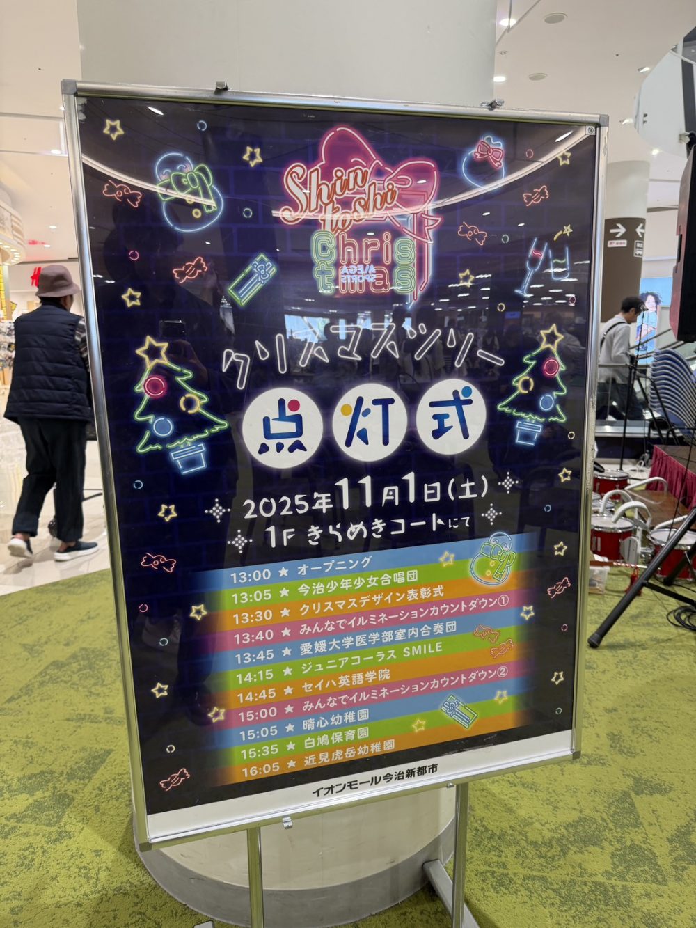 先日、イオンモール今治新都市でクリスマスツリー点灯式が開催されました!🎄