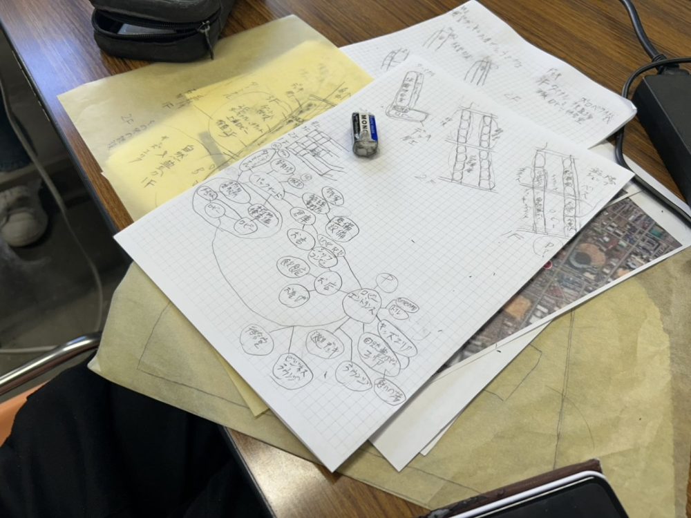 プログラム図を作成している学生さんもいました!大規模な建物で、全体を把握するためには必須の工程(;゚д゚)ゴクリ…