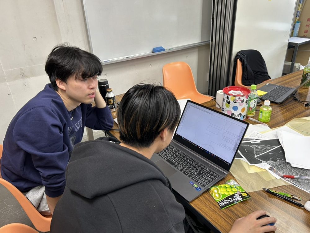 難しい壁に当たった学生さん。仲の良い先輩に教えてもらっています(≧∇≦)