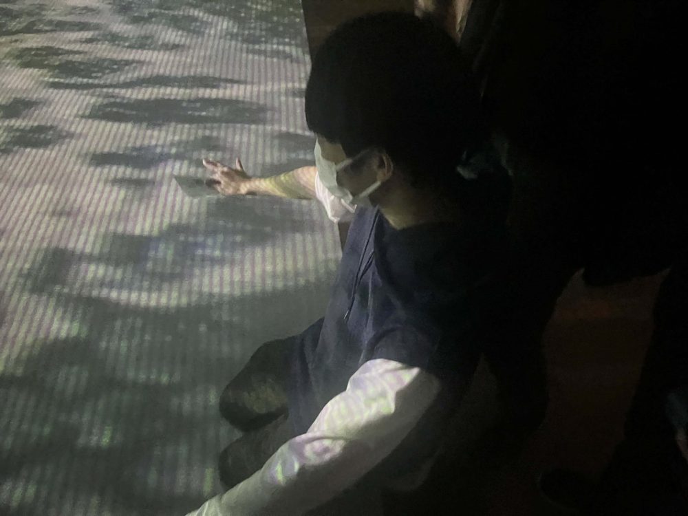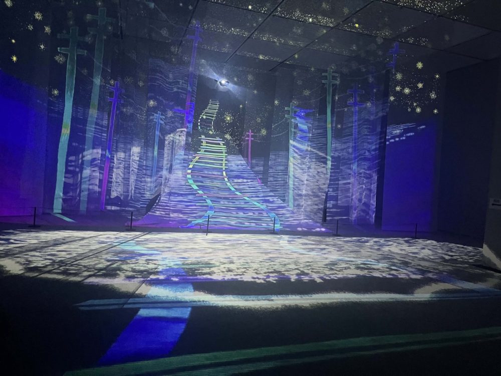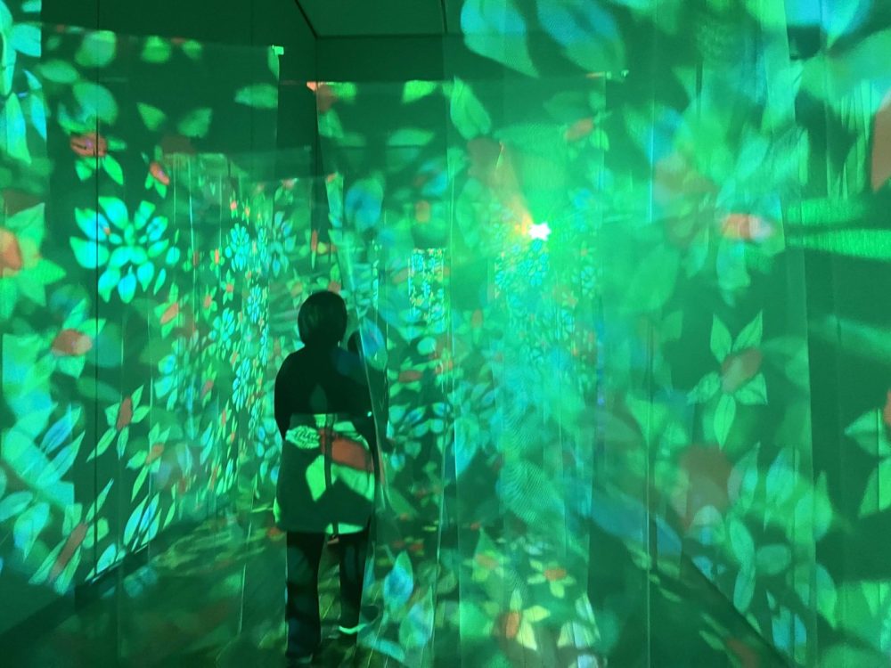 目の前のスクリーンだけでなく、床にも伸びるような映像作品も!