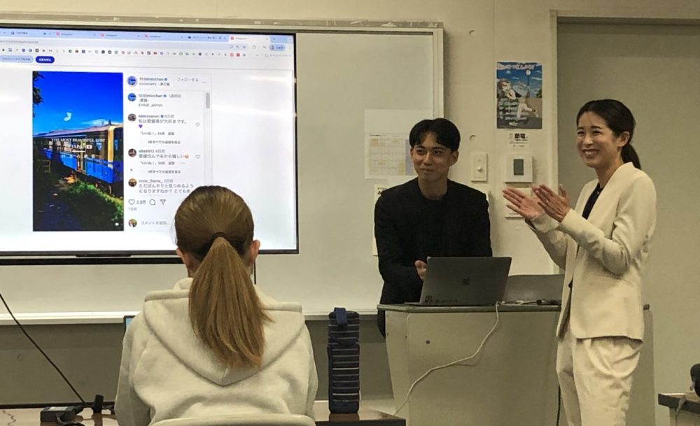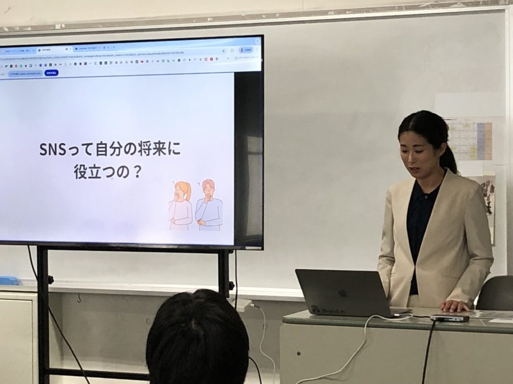 今回は1年生を対象に、SNS運用やショート動画制作の需要が高まっている中、今治在住で様々な会社とお仕事されている山川由香里先生に来ていただき特別講義をしていただきました