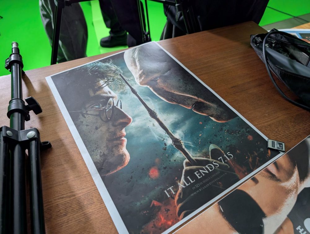 机に広げられた『ハリー・ポッター』のポスター。彼らの視点は、「この光はどこから当たっているか?」「影の濃度はどれくらいか?」という技術的な解析を行いながら再現していきます。