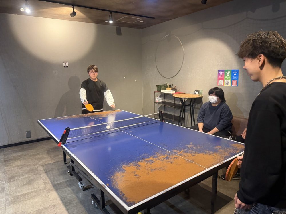 カラオケ、卓球、ボウリングと楽しんでした学生達