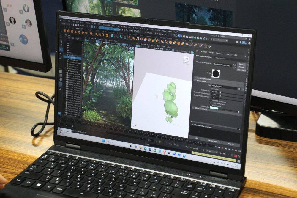太陽光を想定したSunライトとHDRIを使ったドームライトで空や周囲からの自然な反射光を追加しつつ、空気遠近法を表現するためにフォグ効果を適用し、V-Rayレンダラーでのノイズ低減やサンプル数の調整を行いました。