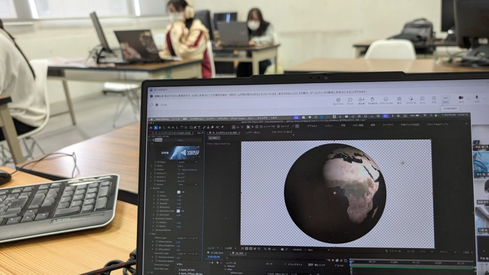 難しい専門用語や設定も多い授業でしたが、学生たちは一つひとつの工程を楽しみながら、それぞれの「地球」を創り上げていました。 「おお、すげー!」「めっちゃリアルになった!」という声があちこちから聞こえてくる、とても活気のある時間でした。