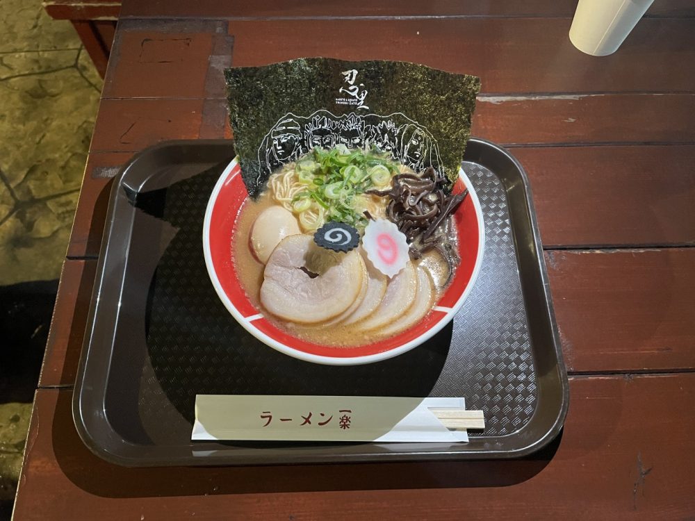 濃厚なとんこつ味で、ナルトやイルカ先生が美味しそうに食べる味が完全再現されていました😋