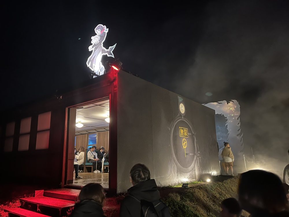 原作の無限城を落下していくようなイメージの照明に照らされた階段を降りていき、各所に設置されたスクリーンにはこれまでの名場面を見ることができました(※スクリーンは撮影禁止)