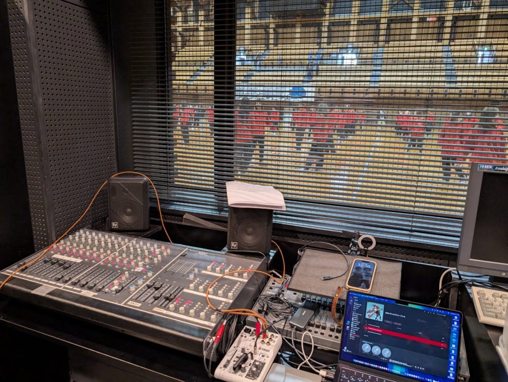 写真にある通り、この機材が、武道館全体を熱狂させる舞台装置です。 開会式の厳粛なBGMから、競技中の高揚感を煽る楽曲、そして学生たちが心を込めて作り上げたチームパフォーマンスの音源出し 。一瞬のミスも許されない現場で、音を出すタイミング一つで、場の雰囲気は大きく変わります。