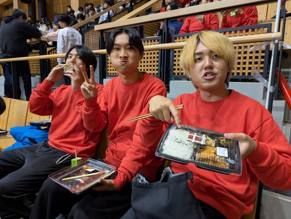 昼休みには、お弁当を囲む学生たちの姿がありました 。たくさん動いた後のお弁当おいしい!!