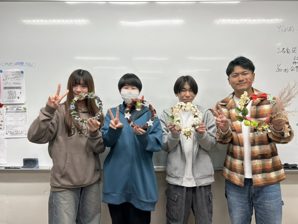 季節限定のクリスマスリース制作体験!ナチュラル素材を使って、自分の感性で色やバランスをデザインしよう💛空間を彩るインテリアデザインを楽しく体験できる人気メニューです。完成したリースはそのままお持ち帰りプレゼント🎁!