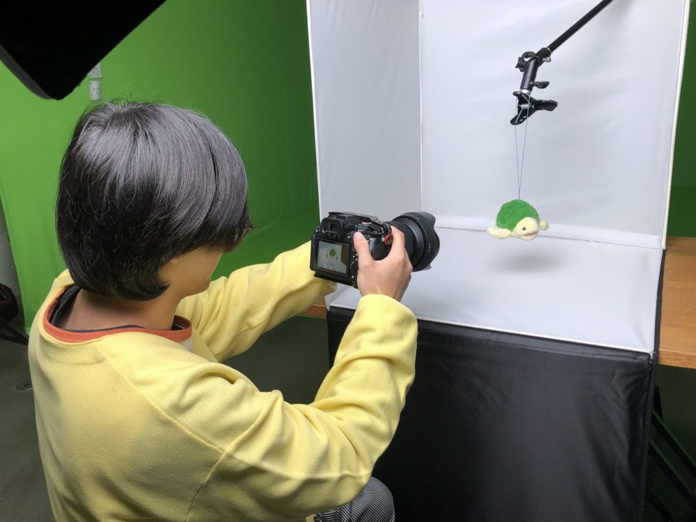 今回素材で使用する被写体のカメさんは、スタジオのグリーンとかぶっちゃうので💦白背景で撮影📸