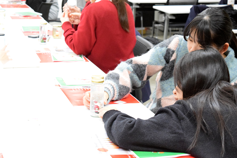 体験授業では、スノードームを制作!!皆さん可愛いスノードームが出来ていました!!