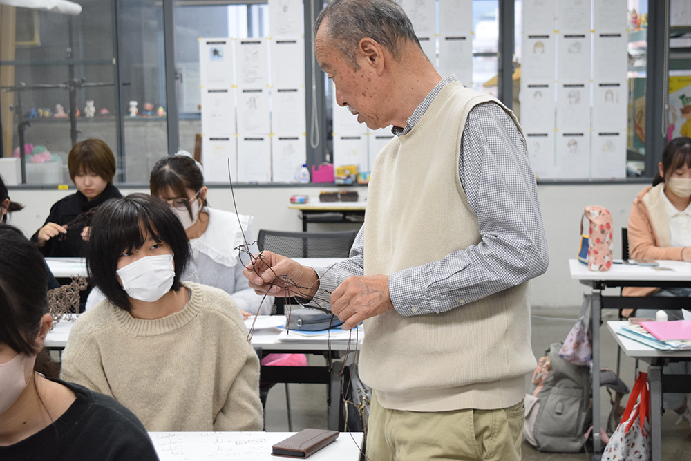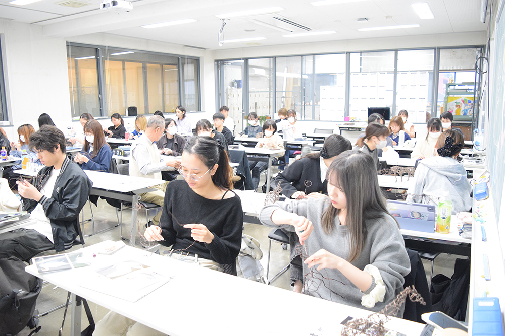 毎年1年生が制作するこの課題。みんな楽しそうに制作しています!増田先生が丁寧に作り方のコツを教えてくれています。この課題、私も毎年見ていてやりたくなる課題の一つです。授業参加して、私は毎年干支でも作ろうかな…ww