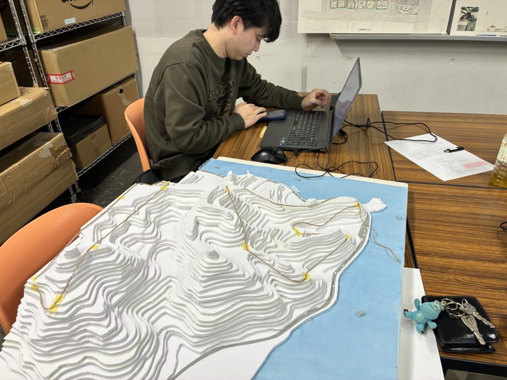 山の上が計画地の班。等高線が上手に作られてキレイな山が出来上がってきています~!!