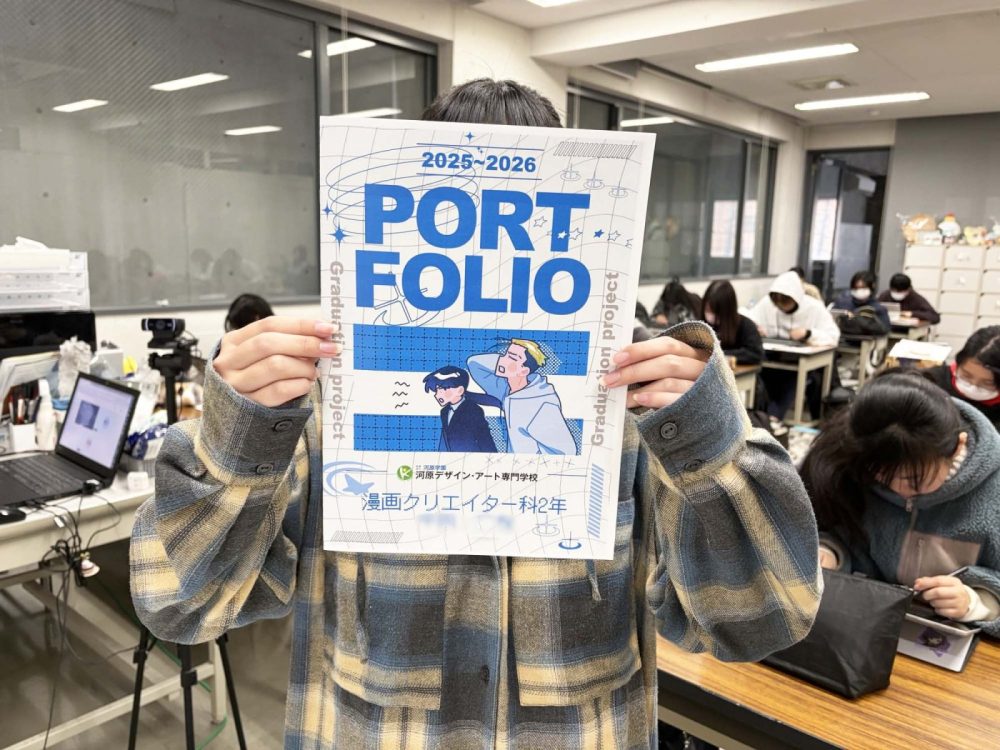 漫画クリエイター科では、漫画家デビュー専攻は16ページ以上の漫画を、コミックアート専攻は、イラスト8枚、アニメーション、Live2Dなどを展示します!