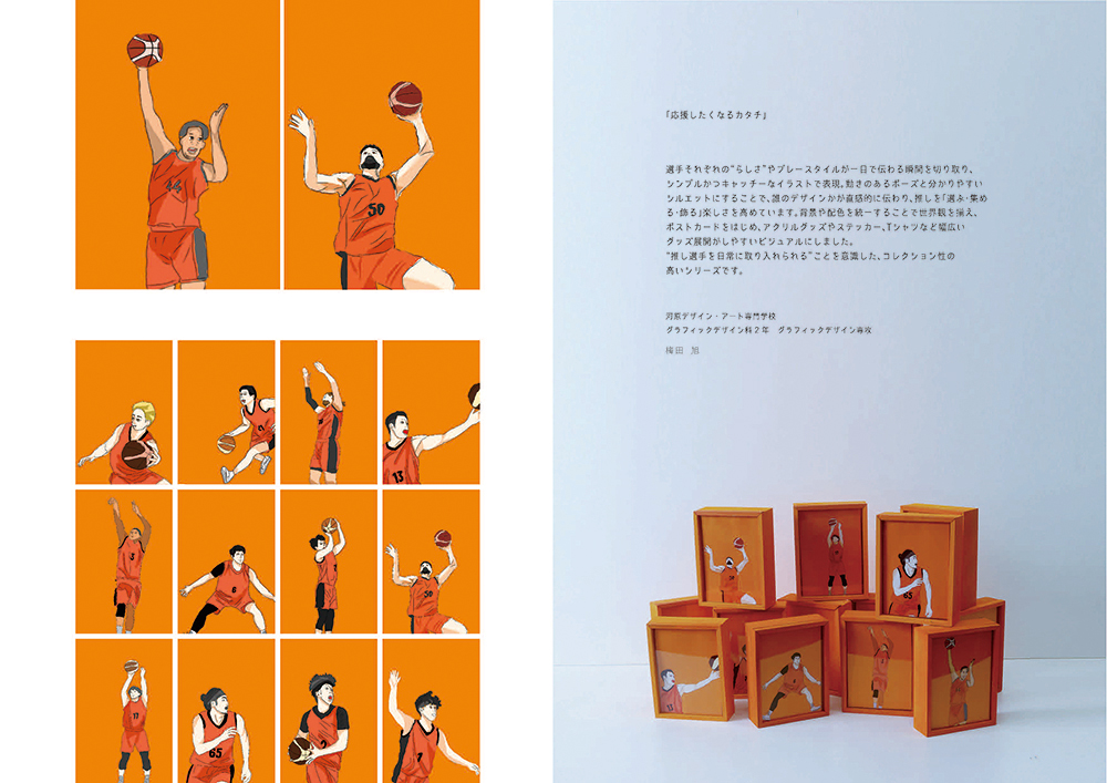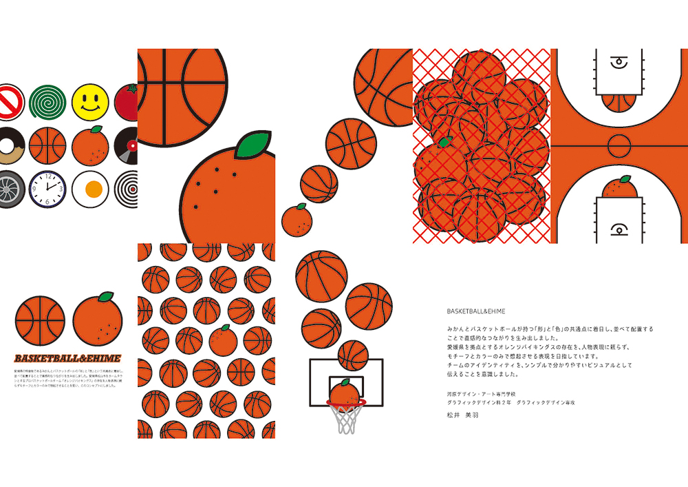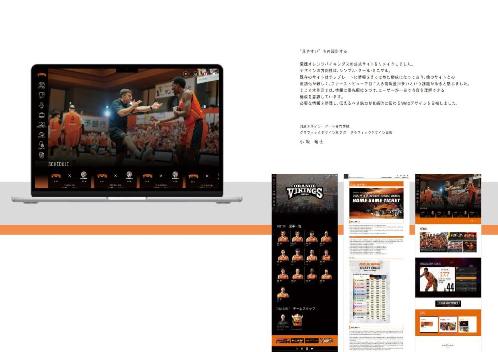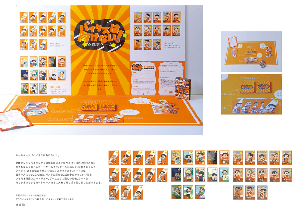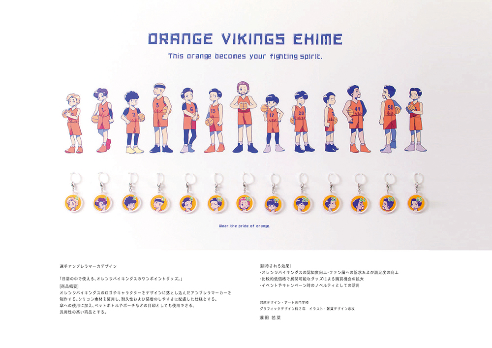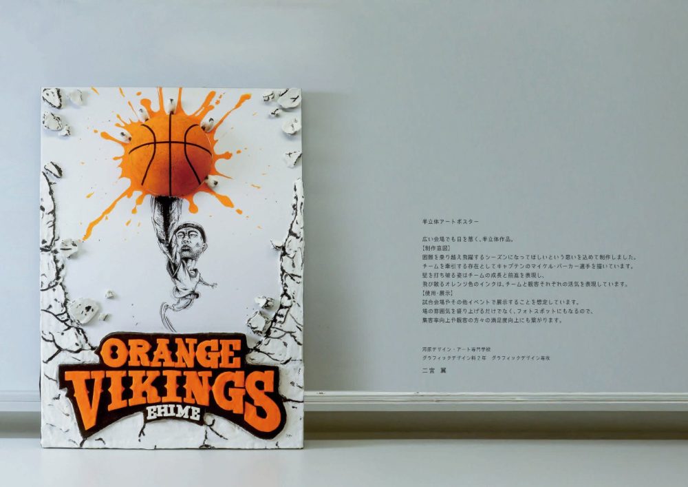 当日は十分に作品を展示することができませんでしたが、2年生31名の作品を、2月14日(土)・15日(日)に高島屋8階スカイドームにて展示します。学生それぞれの視点で表現した、愛媛オレンジバイキングスの魅力をぜひ会場でご覧ください。