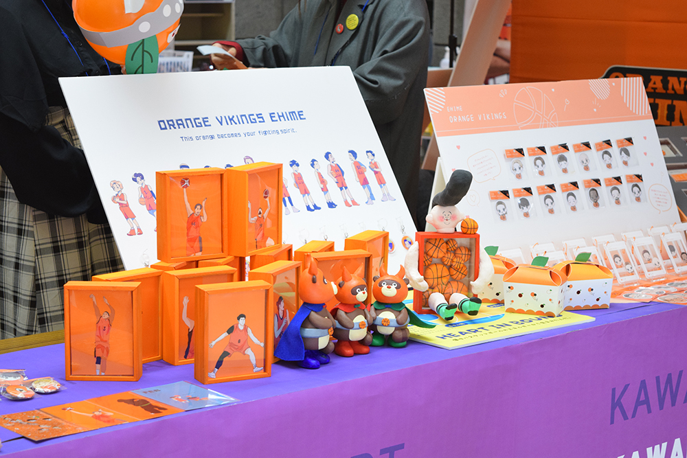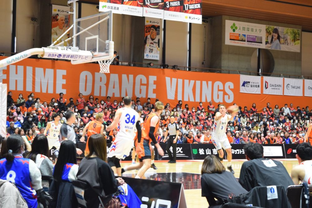 1月30日(土)、愛媛オレンジバイキングスのホームゲームにて、イベントを実施しました。この日は、30日(金)・31(土)の2日間にわたり愛媛オレンジバイキングス vs ライジングゼファー福岡 の試合が開催され、私たちは31日(土)の試合会場にお邪魔しました。会場では、