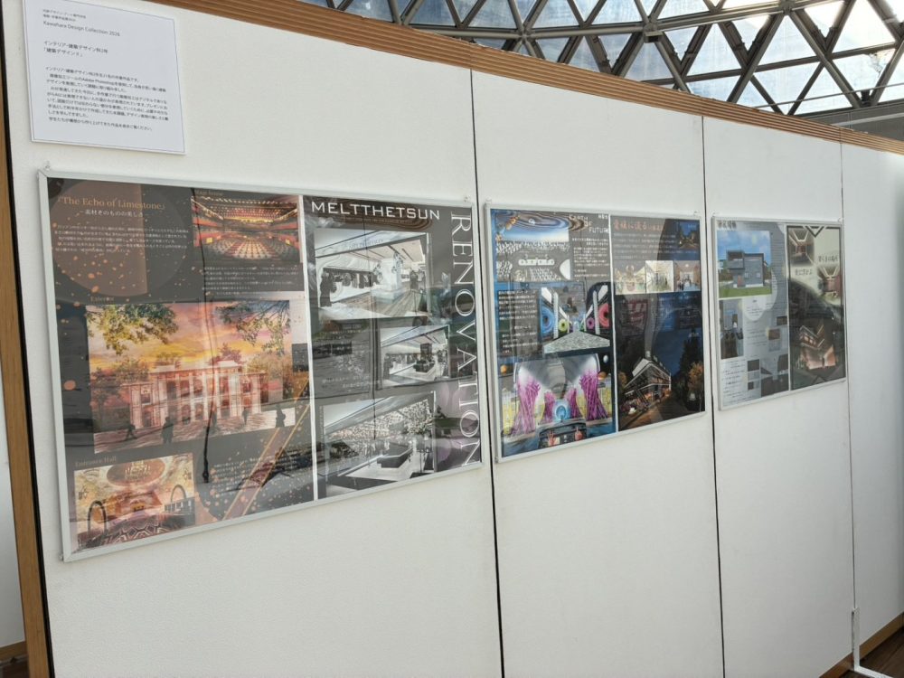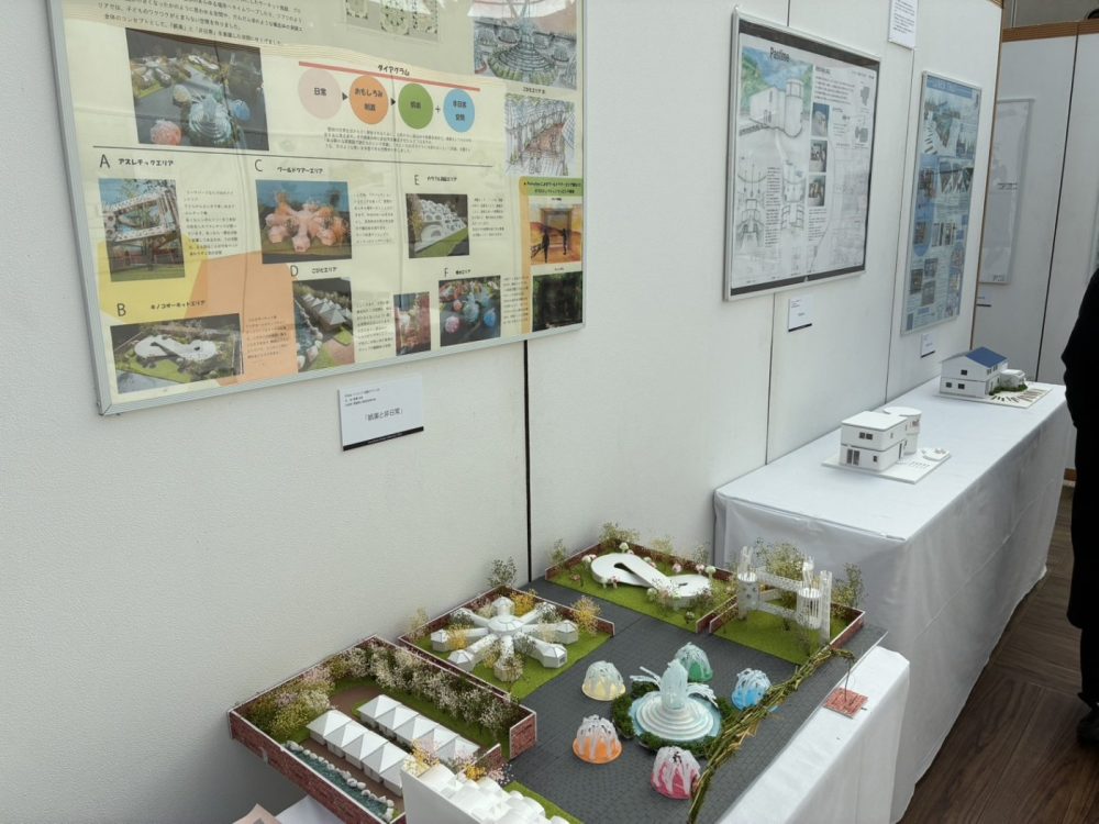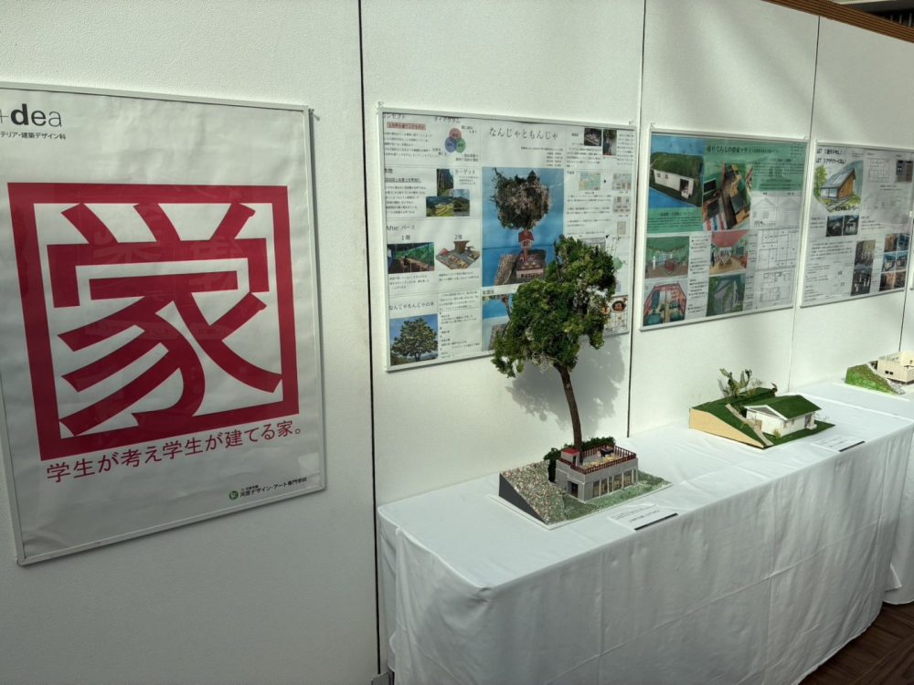 学びやの作品をはじめ、学生さん個人の作品(インテリア、意匠、建築デザイン等)も展示されております!!