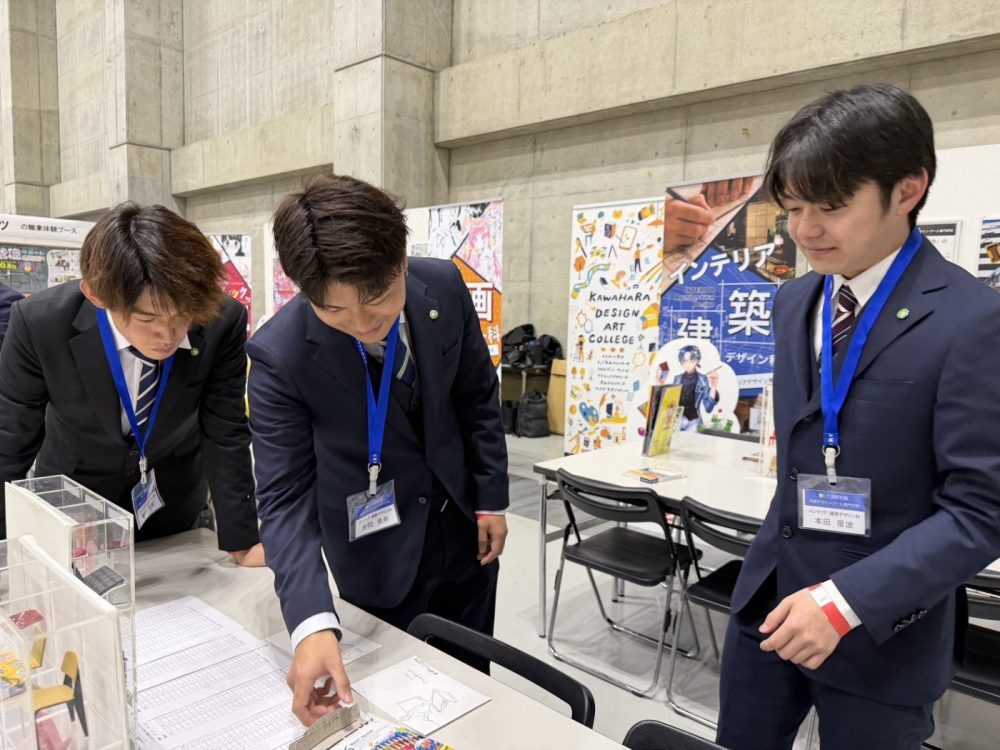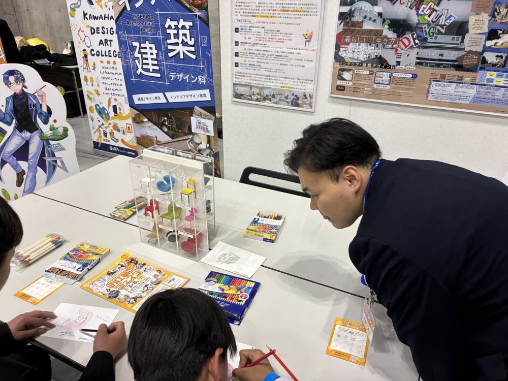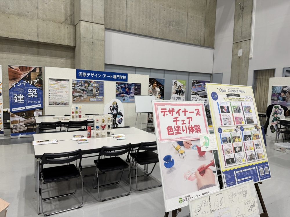 我々デザイン・アート専門学校(ここではインテリア・建築デザイン科を中心に紹介)も体験ブースを展開しております😤