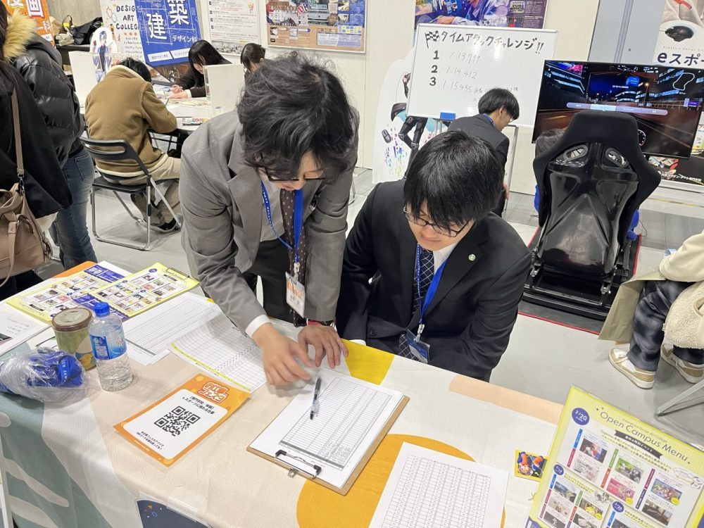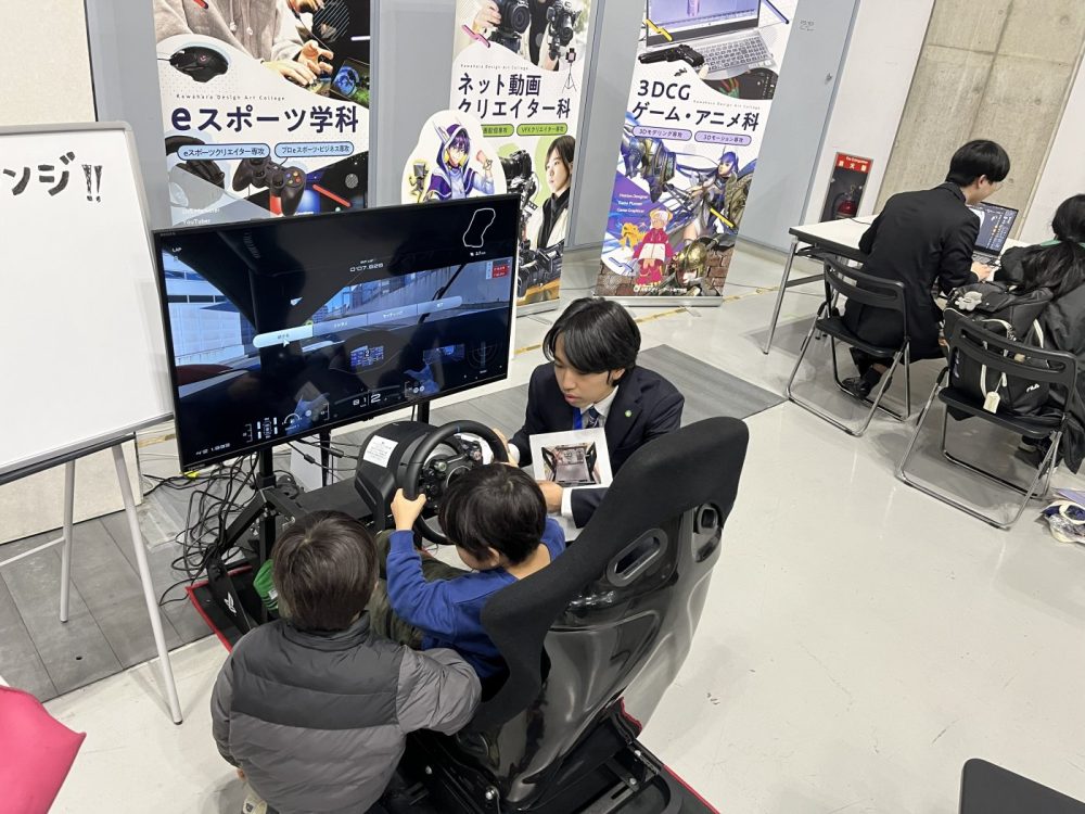 学生たちは、受付と体験ブースに分かれて参加者のサポートを行っていきました✨✨体験ブースのレーシングシートは小学生でアクセルまで足が届かない子がいると椅子の位置を合わせるところから始めていきます😊😊そして操作方法や速く走るコツも教えていきました👍👍